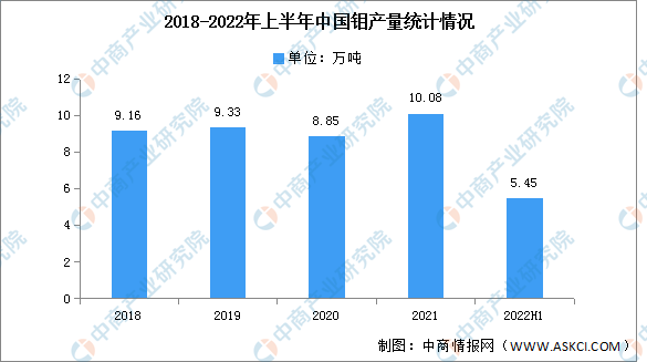 我國(guó)2022年第一季度鉬的產(chǎn)量為25855噸,環(huán)比減少了2%,但同比增加了6%;第二季度產(chǎn)量為28621.5噸,環(huán)比增加了4%,同比增加了14%。