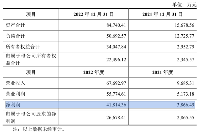 興鋰科技的凈利潤,2022年3.09億元,2021年2252.85萬元,同比增長12.71倍。