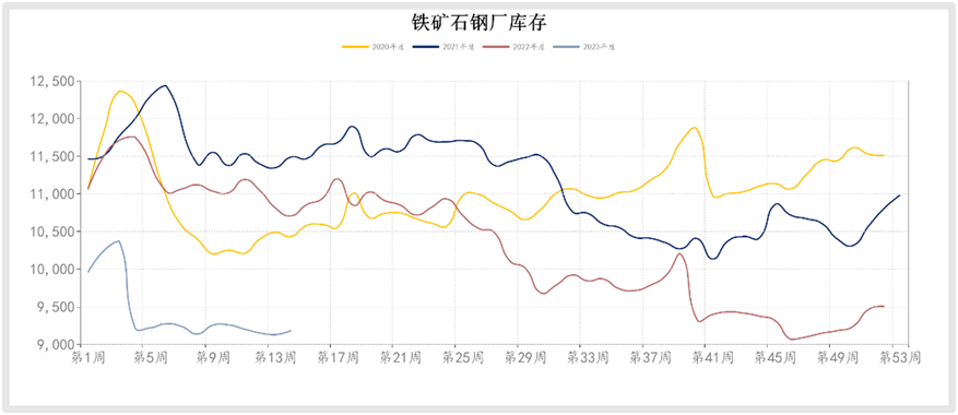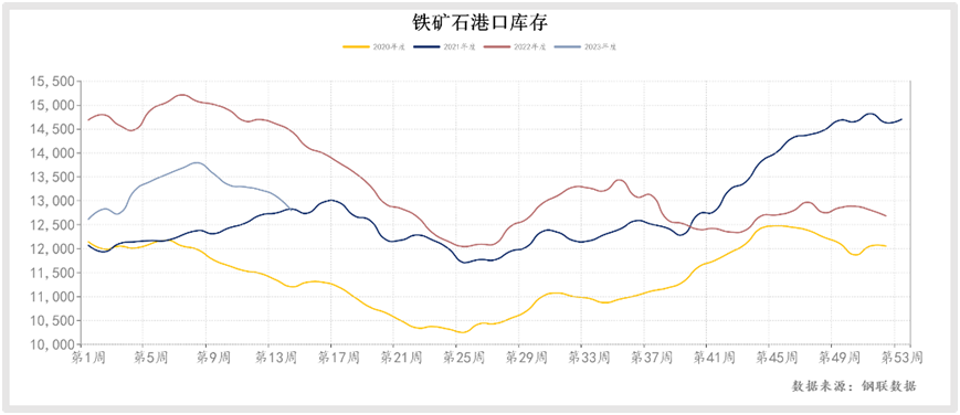 據(jù)mysteel數(shù)據(jù),4月初的一周,其統(tǒng)計的247家鋼廠高爐產(chǎn)能利用率91.2%,日均鐵水產(chǎn)量245.07萬噸,距離近五年的最高點,即2020年8月份的253.3萬噸,只相差8.23萬噸。目前鋼廠鐵礦石總庫存與庫銷比維持低位,45港口鐵礦石庫存去庫308萬噸至1.32億噸。