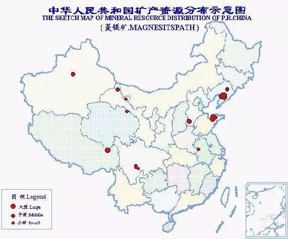 中國是世界上菱鎂礦資源最為豐富的國家。總保有儲量礦石30億噸,居世界第1位。我國菱鎂礦的重要特點是地區(qū)分布不廣、儲量相對集中,大型礦床多。探明儲量的礦區(qū)27處,分布于9個省(區(qū)),以遼寧菱鎂礦儲量最為豐富,占全國的85.6%。