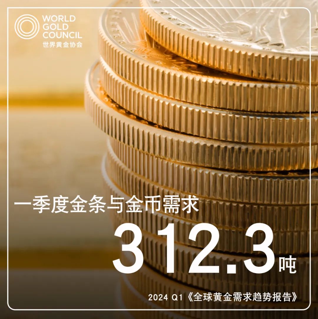 4月30日,世界黃金協會發布2024年一季度《全球黃金需求趨勢報告》顯示,一季度全球黃金需求總量(包含場外交易)同比增長3%至1238噸。世界黃金協會中國區CEO王立新表示,這成為2016年以來最亮眼的一季度戰績。而不含場外交易的一季度全球黃金總需求為1102噸,較2023年同期下降5%。