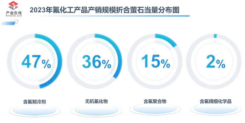 2023年含氟制冷劑產銷規模折合螢石當量約235.7萬噸,消費占比47%。含氟制冷劑應用于冰箱、空調、冷庫等制冷設備,另外部分含氟制冷劑單質也是含氟高分子材料的主要原材料。