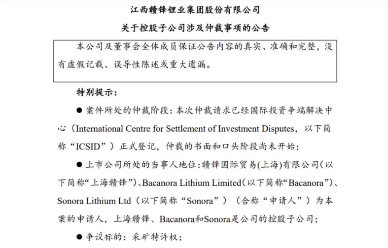 從2019年起,贛鋒鋰業(yè)多次增資收購墨西哥Sonora鋰黏土項(xiàng)目(以下簡稱Sonora項(xiàng)目),終于在2022年8月買下Sonora鋰礦的所有股權(quán)。但在去年8月,墨西哥礦業(yè)總局發(fā)出通知取消贛鋒鋰業(yè)關(guān)聯(lián)公司Bacanora在墨西哥持有的Sonora項(xiàng)目的9個(gè)礦產(chǎn)特許權(quán),即贛鋒鋰業(yè)不再擁有在墨西哥的這9個(gè)鋰礦的經(jīng)營權(quán)和采礦權(quán)等。