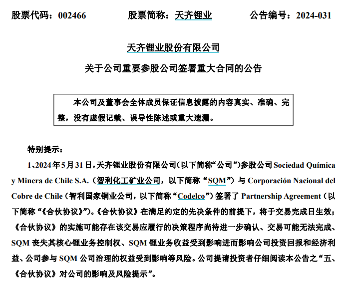 無獨(dú)有偶。前段時(shí)間,另一礦企天齊鋰業(yè)也遭遇了相似的海外資產(chǎn)權(quán)屬的問題。作為SQM(智利化工礦業(yè)公司)的第二大股東,天齊鋰業(yè)在不知情的情況下,SQM與Codelco將組建由政府控制的合營公司,共同開發(fā)鋰礦資源。