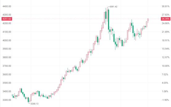 黃金市場(chǎng)同樣獲得機(jī)構(gòu)投資者強(qiáng)烈看好。今年至今,金價(jià)已累計(jì)上漲約57%,是幾十年來(lái)表現(xiàn)最好的一年之一。這種上漲由一系列因素推動(dòng),如央行增加購(gòu)買、通脹居高不下,以及投資者對(duì)美國(guó)經(jīng)濟(jì)實(shí)力和關(guān)稅問(wèn)題的擔(dān)憂。