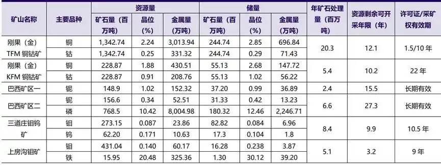 至2024年末,公司權(quán)益銅資源量居于全球第13位,中國(guó)第2位;鈷資源量全球第1,掌握全球近半鈷資源。